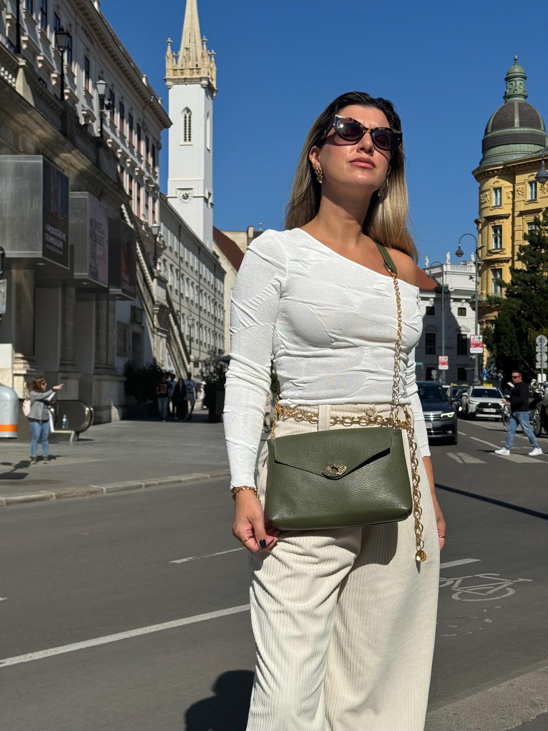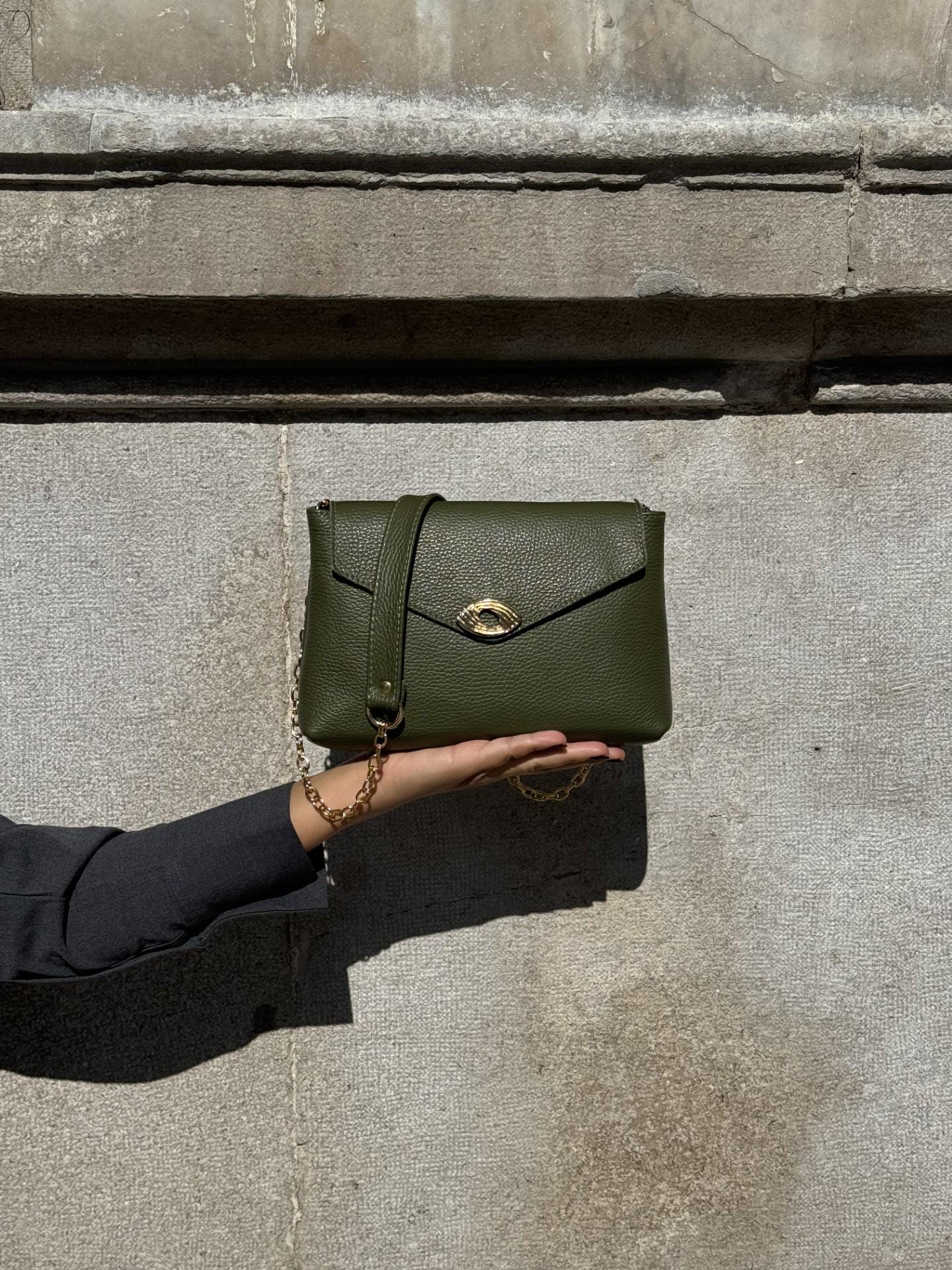 Elevate your style with our exquisite women’s leather shoulder bag “Thalia”, the muse of happiness, based in greek mythology. My new bag that is crafted from premium full grain leather in a rich oiled hue, this bag exudes elegance, sophistication and happiness to every woman that will try it. Adorned with luxurious gold buckles and a unique aluminum chain strap, every detail exudes opulence. Featuring a practical interior pocket and spacious compartment, this bag seamlessly combines timeless charm with modern functionality. Discover the perfect blend of luxury and practicality at us Store.