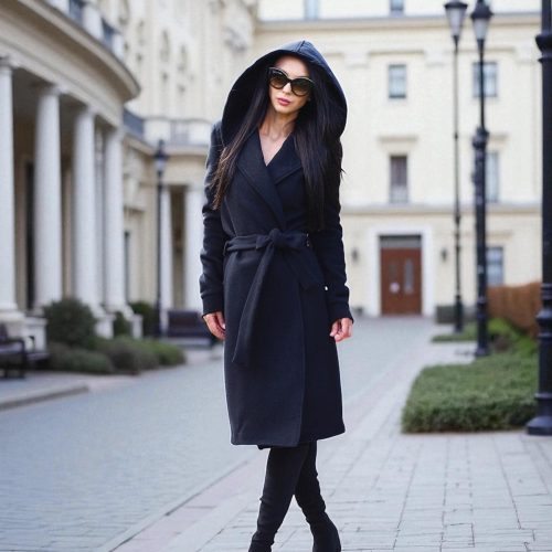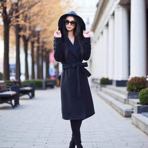 Long winter coat with removable hood